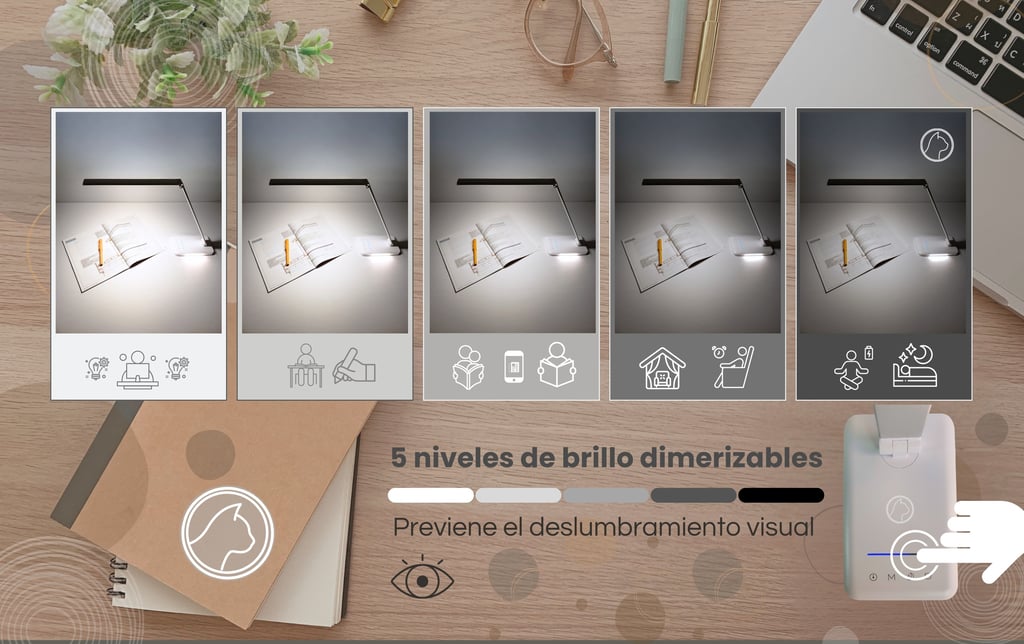 Ilumina tu espacio de trabajo con nuestras elegantes lámparas LED de escritorio.